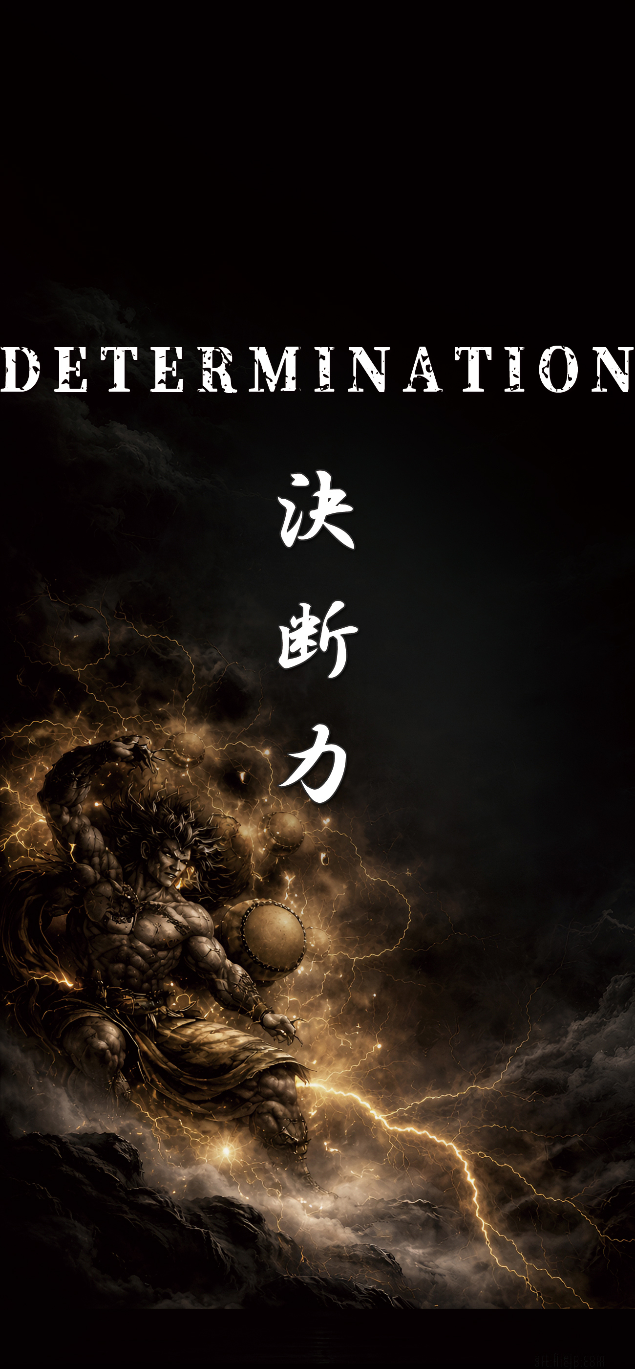 迷うことなく雷を放つ雷神の姿は、まさに決断の化身。その力強い筆致は、見る者の心にある逡巡を焼き払い、力強く前進させます。高品質な4Kデザインが、あなたの意志を加速させます。