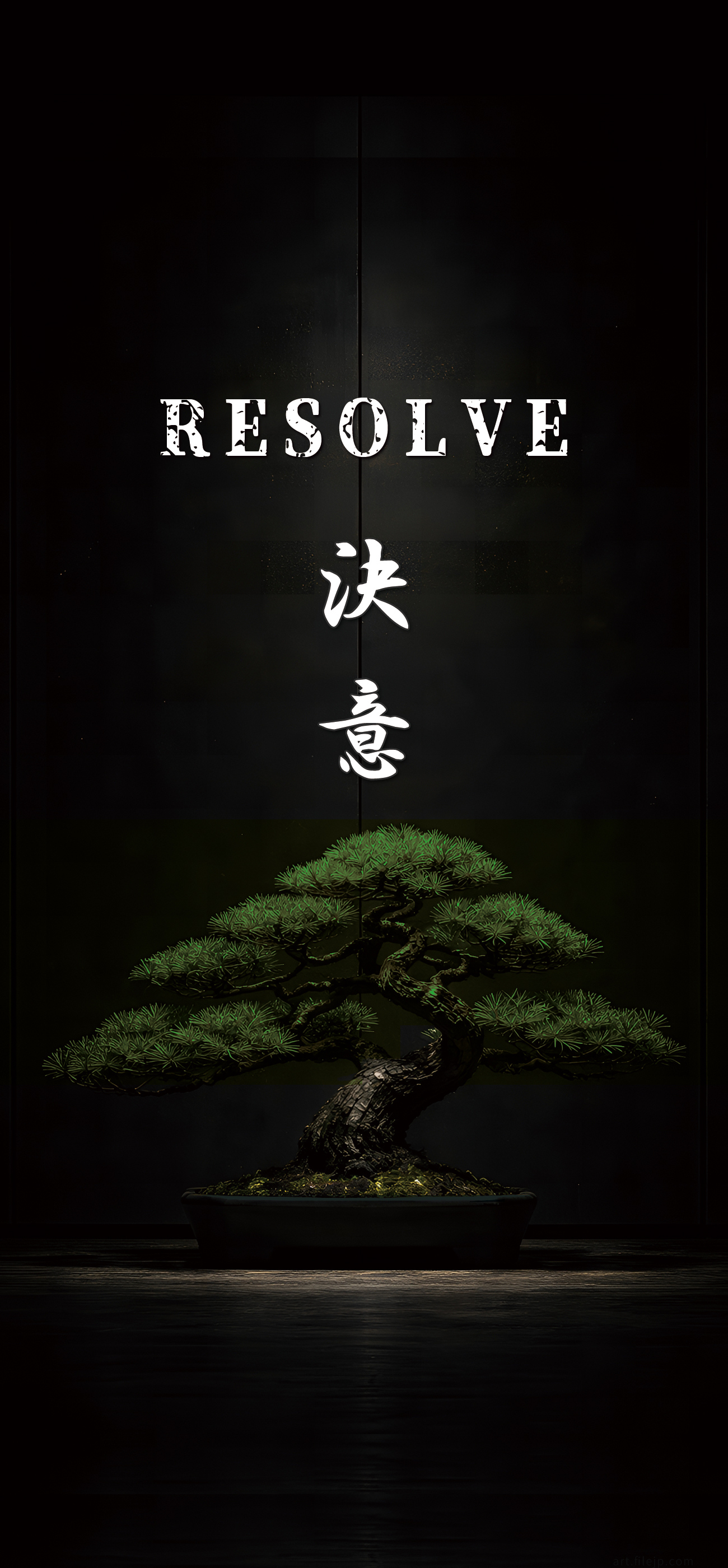 盆栽は、数十年後の完成を夢見る「決意」から始まります。この高品質な壁紙は、迷いを断ち切る潔さを伝え、あなたの人生に明確なビジョンと強い意志をもたらします。