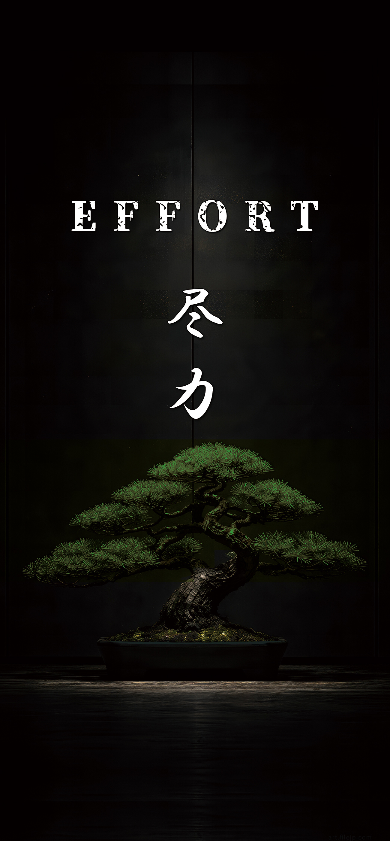 最新iPhoneの画面に映える、威厳ある盆栽の姿。壁紙に設定することで、日本の伝統が大切にする「尽力」の心を身近に感じ、日々のタスクに全身全霊で向き合う力を得られます。