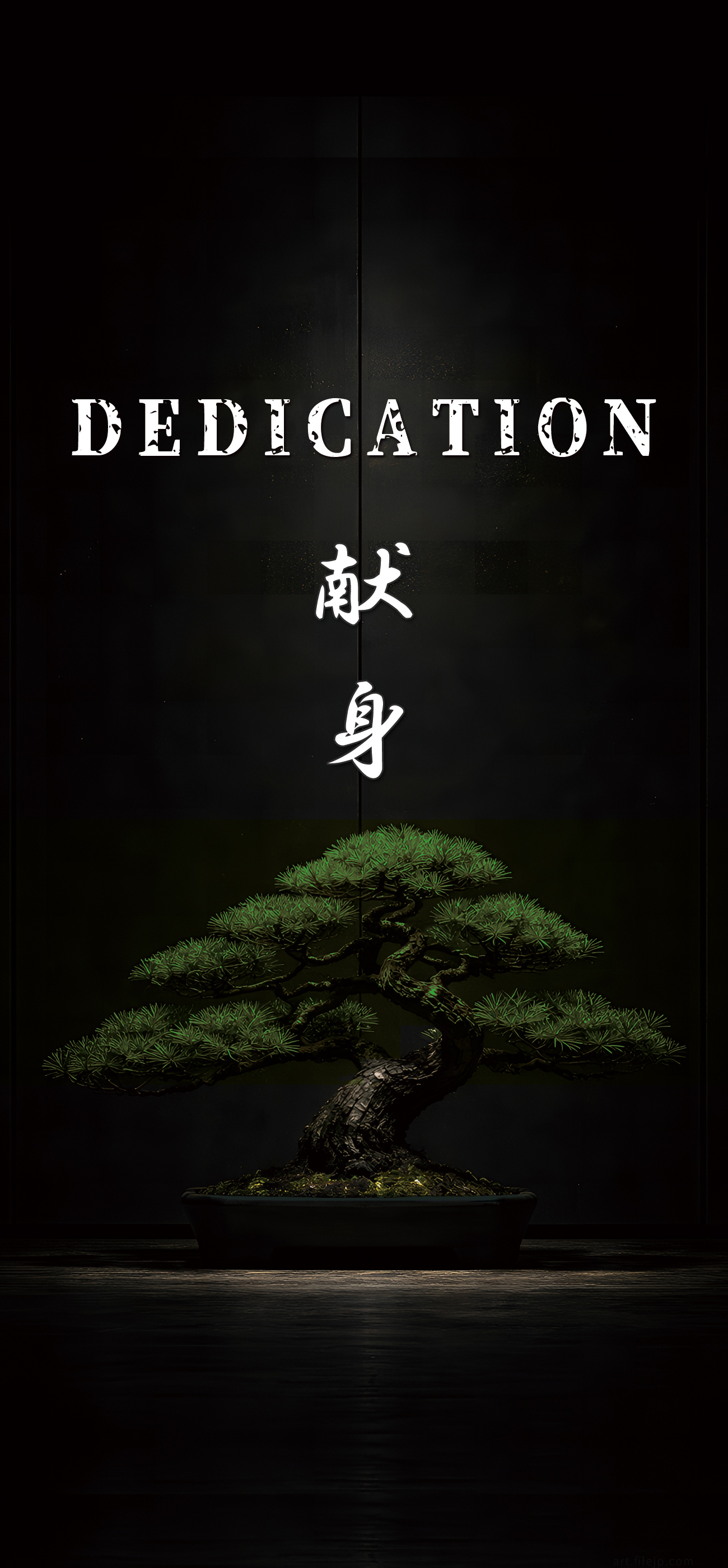 The world of bonsai, where the grower’s passion responds to the pine’s life force. It is art born of selfless “Dedication.” This design guides your passion toward a noble and pure state.