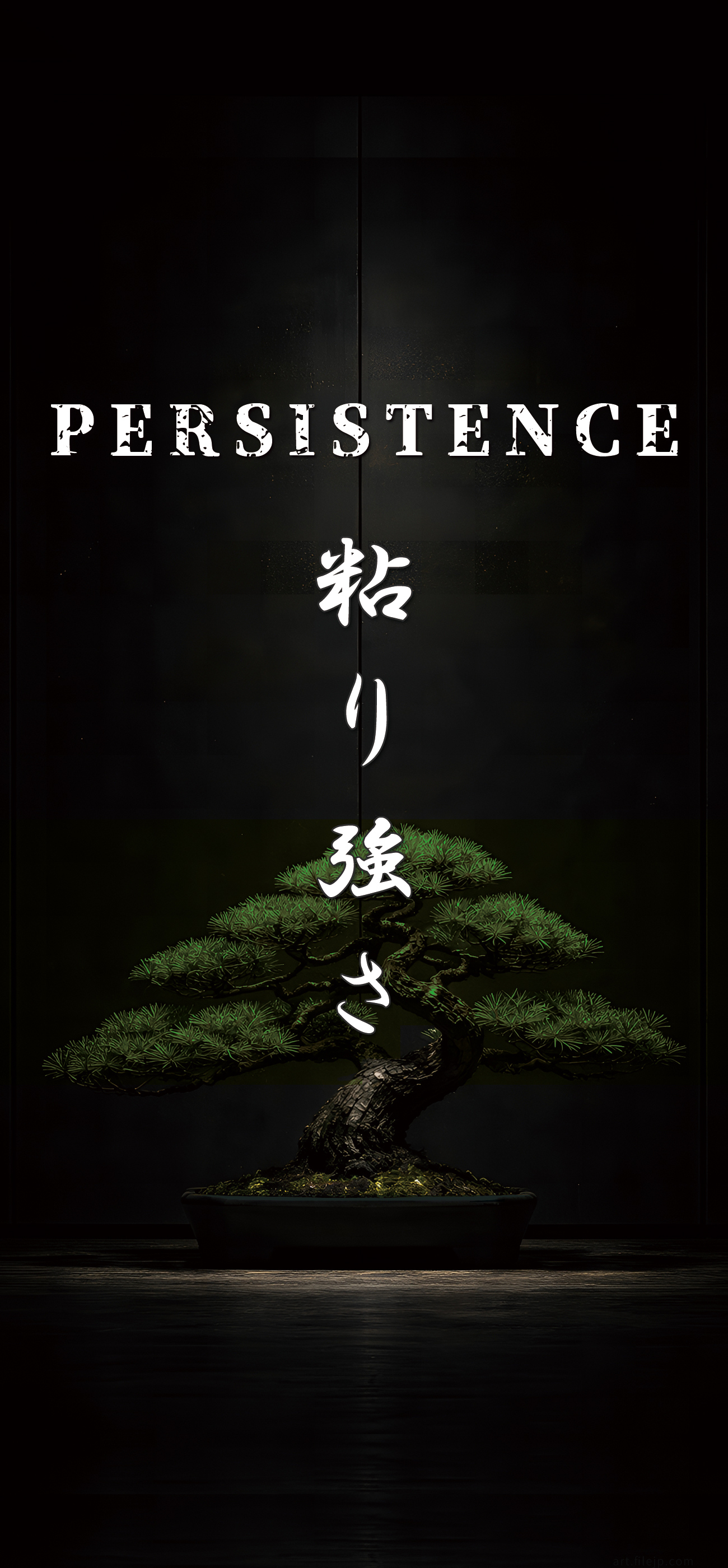 Experience the texture of ancient bark on your latest iPhone. By setting this wallpaper, you integrate the “Persistence” of Japanese tradition into your life. The bold Kanji design silently empowers your journey toward self-actualization.