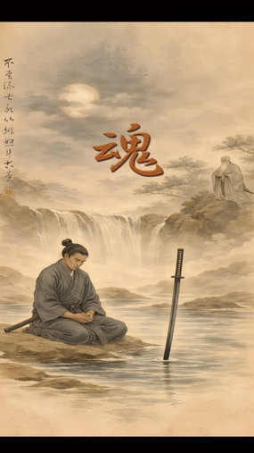 The idiom **不退転 (Futaiten)** originates from Buddhist terminology, meaning to never back down or lose conviction. For a Samurai, it represented the ultimate mental state of “no retreat.” The character is composed of “No” (不), “Retreat” (退), and “Turn” (転). This wallpaper depicts a warrior in a moment of absolute decision, perhaps amidst a storm or before a grand castle. The bold, heavy strokes of the “Futaiten” Kanji mirror the iron will required to stay the course. It reflects the architectural strength and spiritual dignity of Japan’s historical past.
