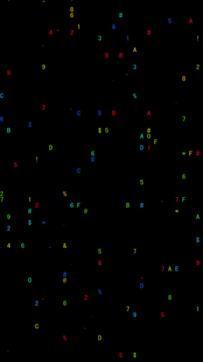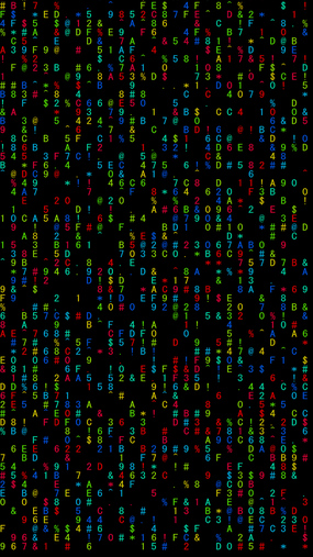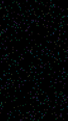 Imagen de fondo que evoca el diseño cyber con letras y colores brillantes en la oscuridad. Hemos creado una imagen de flujo binario formada por colores. Este fondo de pantalla para smartphone es un diseño genial que eleva artísticamente el punto de vista del hacker y transforma tu dispositivo en una impresión elegante y cool. Como material de imagen de alta calidad, el patrón donde fluyen los códigos de texto es hermoso y se puede utilizar también como referencia de diseño que colorea la pantalla del iPhone.